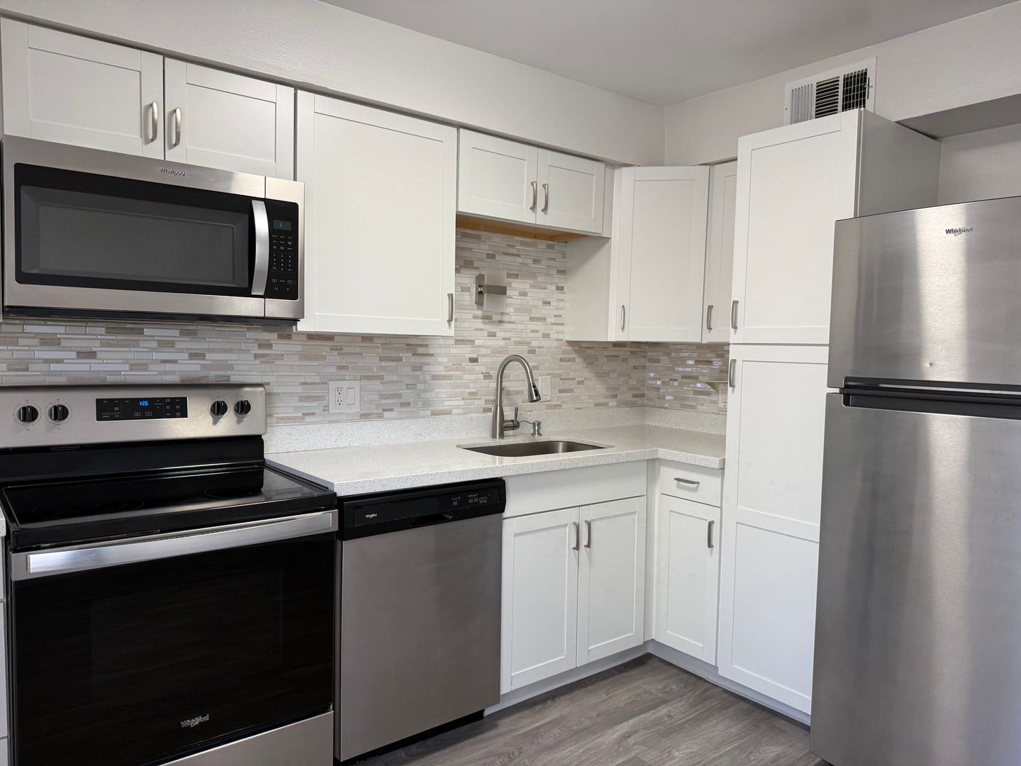 Gourmet Kitchen: Delight in culinary adventures with brand-new stainless steel appliances, sleek granite countertops, and a chic subway tile backsplash.