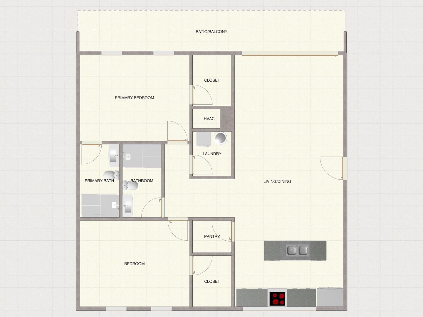 Key Features: brand new construction available August 2025; 2 bedrooms, 2 bathrooms; 1,200 sq ft; private terrace with sliding glass windows; 10 foot ceilings, modern kitchen with dishwasher; in-unit washer and dryer; stylish wood-style flooring; secure boutique 6-unit building; prime downtown location.