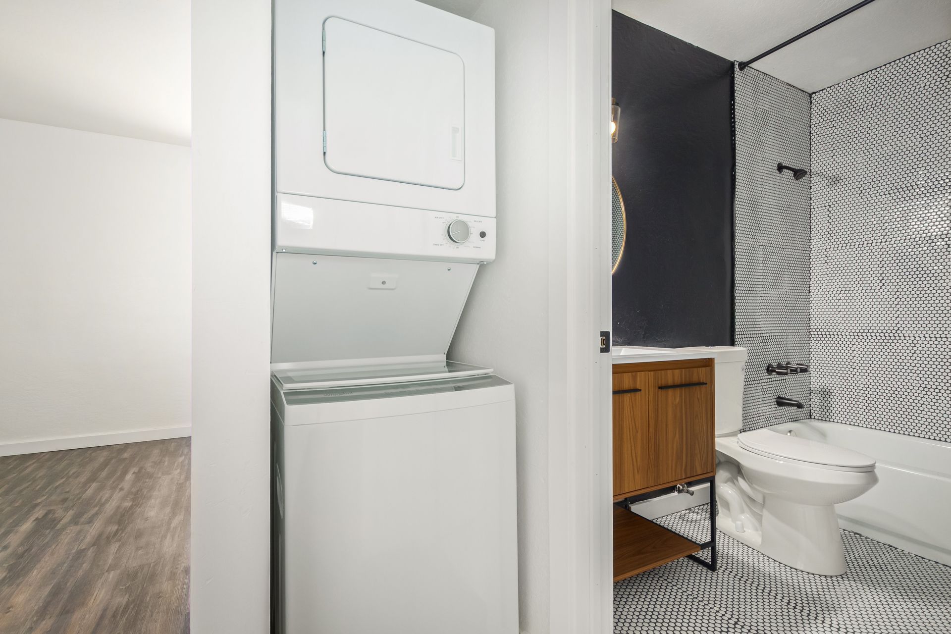 Enjoy the convenience of in-unit laundry with a washer and dryer included, plus ample storage space to keep your home organized and clutter-free.
